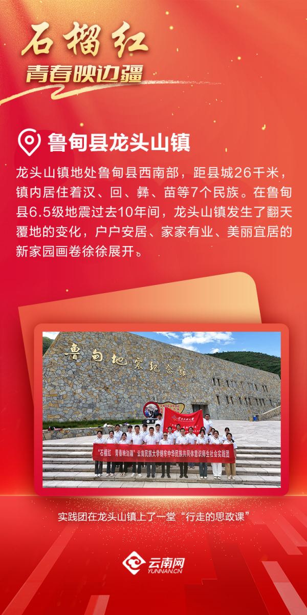 這個暑假,云南民族大學鑄牢中華民族共同體意識師生社會實踐團共分為十一個分隊,沿著習近平總書記的足跡,以“石榴紅 青春映邊疆”為主題開展一系列暑期社會實踐活動,上一堂“行走的思政課”,上一堂鑄牢中華民族共同體意識教育社會實踐課,親身感受在習近平新時代中國特色社會主義思想指引下云南各族群眾生產生活發生的深刻變化,切身體悟習近平總書記的人民情懷和歷史擔當,深切體悟習近平新時代中國特色社會主義思想的實踐偉力。