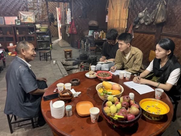7月16日,實踐團第七小分隊的師生們前往滄源佤族自治縣班洪鄉班洪村。實踐團師生與班洪村老支書胡德學進行訪談交流,胡德學老支書飽含深情地分享了在收到習近平總書記回信之后阿佤山的新變化,并流露出對阿佤山未來發展的信心和期待。