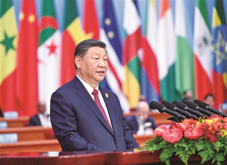 習近平強調,中國和非洲占世界總人口的三分之一,沒有中非的現代化,就沒有世界的現代化。未來3年,中方愿同非方攜手推進現代化十大伙伴行動,深化中非合作,引領全球南方現代化。