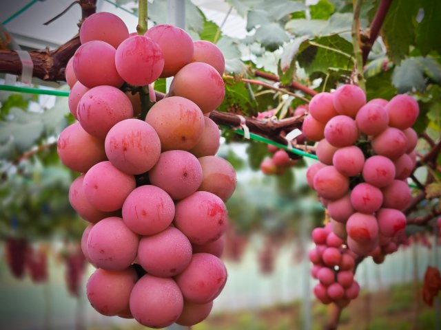 “妮娜皇后”是目前市場上少有的綜合性狀表現較好的鮮紅色、巨大粒中晚熟新品種,肉質細膩脆嫩,帶有馥郁的花香,草莓、牛奶的清香以及浪漫的紅酒芳香,在口感和風味上都超越了傳統的葡萄。