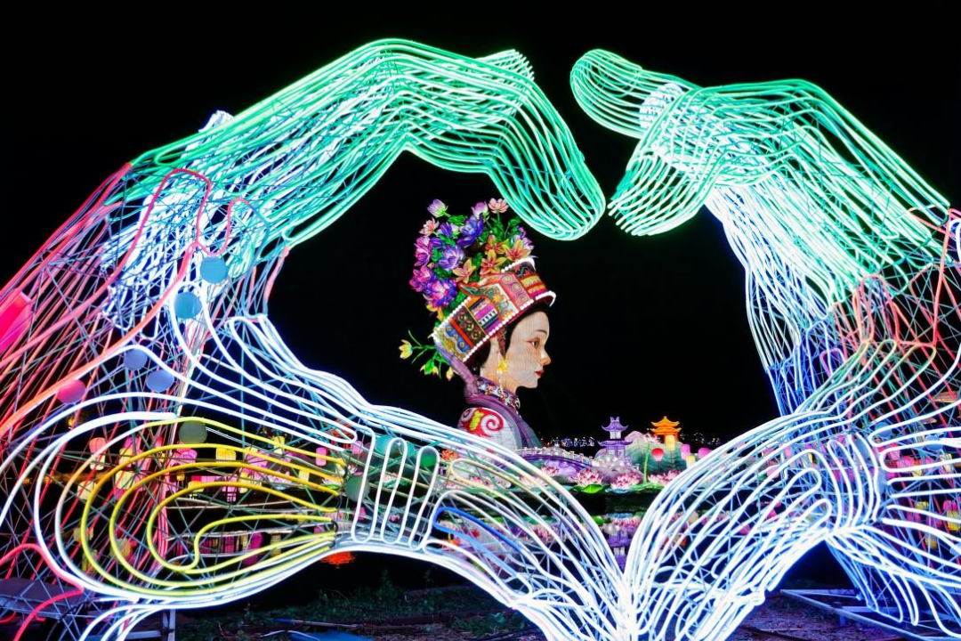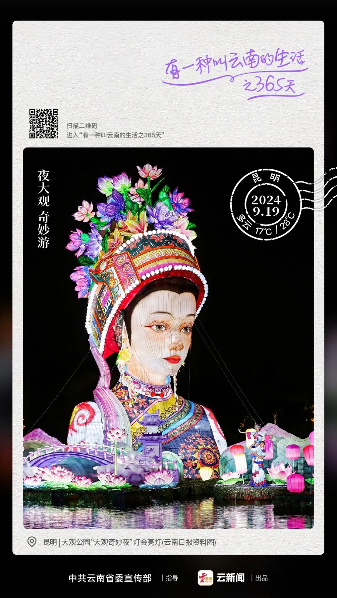 夜幕降臨,64組彩燈如星河璀璨,巨型燈組“阿詩瑪”與“大觀印象”“滇派內(nèi)畫”等彩燈交相輝映,將非遺之魂以光影語言娓娓道來,讓游人盡覽云南文化的深邃與絢爛。