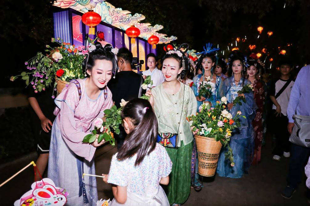 漫步于“云津夜市”,仿佛穿越時空,回到了古代的繁華市集。漢服小販穿梭其間,古箏琵琶之音繞梁不絕,傳統(tǒng)樂韻與現(xiàn)代光影共舞,營造出一幅生動的國風畫卷。游客們隨工作人員穿梭于市集,參與劇本游園、集章打卡,享受一場深度文化沉浸之旅。
