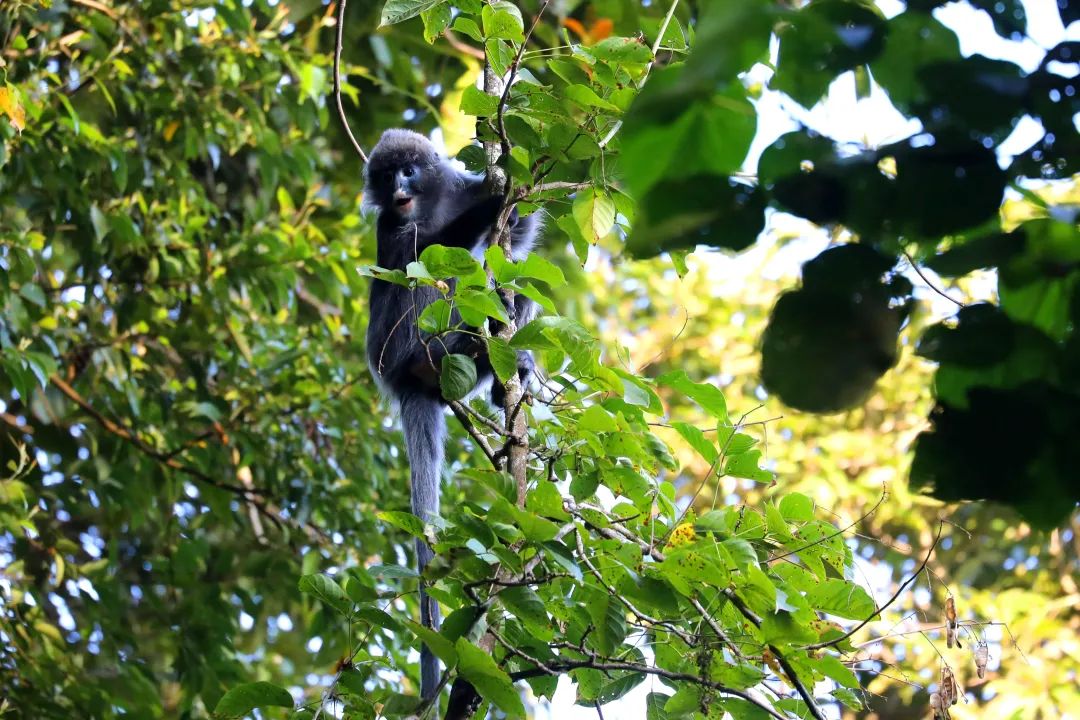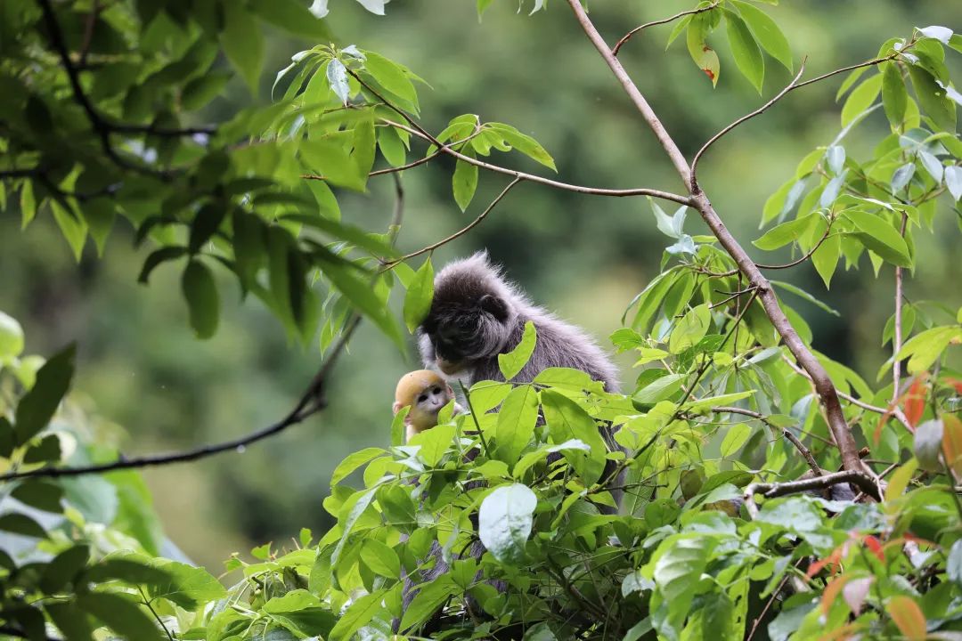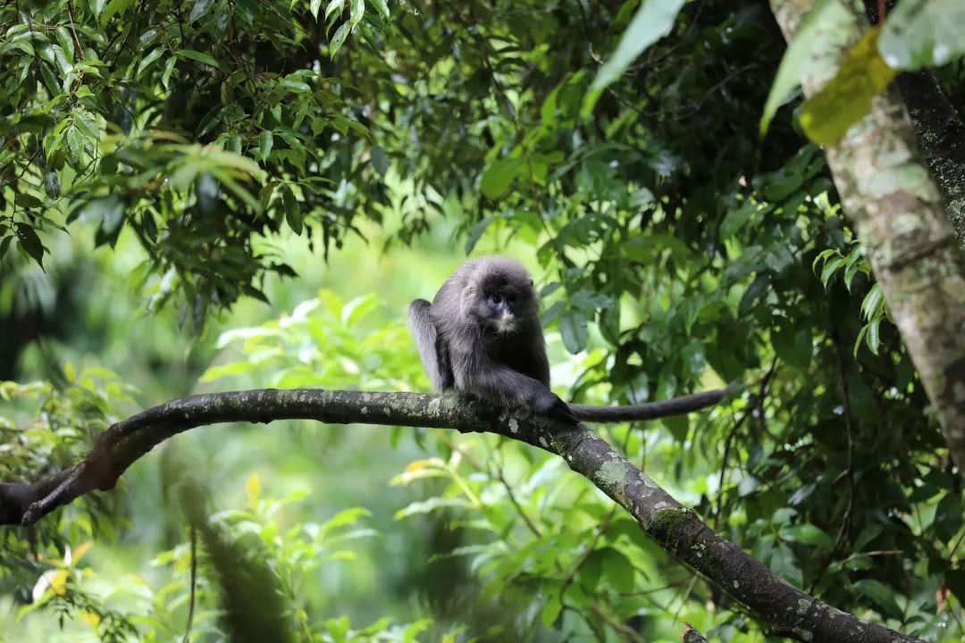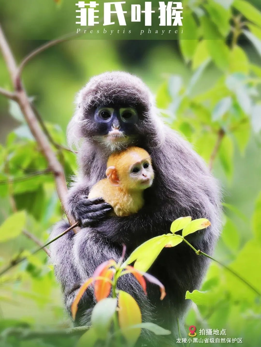 黨的二十大報告中指出,大自然是人類賴以生存發展的基本條件。尊重自然、順應自然、保護自然,是全面建設社會主義現代化國家的內在要求。地處北緯24度的龍陵小黑山省級自然保護區是高黎貢山與滇西南各自然保護區之間動植物物種基因交流的“黃金”聯結紐帶,原始生態系統多樣性復雜,野生動植物資源富集。這里不僅有山的巍峨、水的綿亙,更有植物的多彩、動物的奇特,可謂是自然有千般樣貌,生命有萬般姿態。今天,小編帶您走進神奇的小黑山,開啟一趟珍稀瀕危野生動植物的奇遇之旅,去探究北緯24度線上人與自然和諧共生的生命密碼。菲氏葉猴(Presbytis phayrei),又名白頭葉猴、灰猴、長尾猴,隸屬靈長目猴科。為國家一級重點保護野生動物,被列入《中國生物多樣性紅色名錄》(CITES)附錄Ⅱ易危物種和《世界自然保護聯盟》(IUCN)2008年瀕危物種紅色名錄瀕危物種。