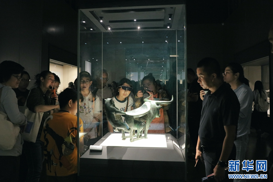 觀眾在云南省博物館里觀賞和了解牛虎銅案(資料圖)。新華網 趙普凡 攝