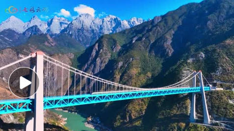 虎跳峽金沙江鐵路大橋位于麗江與香格里拉交界處的虎跳峽景區,橫跨金沙江,全長882.5米,主跨達660米,橋面離江面垂直距離約250米,相當于80余層樓房高度。大橋兩端分別與玉龍雪山隧道和哈巴雪山隧道連接,是麗香鐵路重點控制性工程。