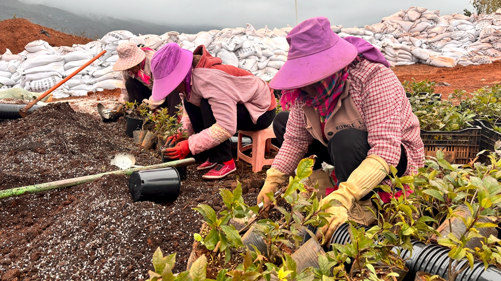 營溝村5組村民呂金梅:從基地一落地,我們就帶些人在這里干活,每天做什么的都有,栽苗、栽樹、搬苗、拔草、打藥水這些,我們做的時間也長,還覺得可以。手下人多,有三四十個,一個月我們上滿班有3500元左右,我們從家里面到這里10-20分鐘,在這里又可以管老人、管小娃娃,做伙計(jì)也方便,過節(jié)老板都會給我們點(diǎn)福利。