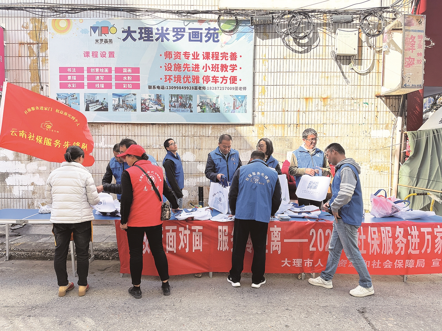 11月15日至21日期間,大理市人力資源和社會保障局緊扣2024年社保服務(wù)進萬家主題,通過開展進企業(yè)園區(qū)、進鄉(xiāng)村社區(qū)、進核心商圈等“四進六深入”系列宣傳活動,采取設(shè)立咨詢臺、發(fā)放宣傳資料、張貼宣傳海報、播放宣傳視頻等形式開展社保宣傳,向“八類重點人群”宣傳參保登記、待遇測算、工傷預(yù)防、個人養(yǎng)老金、“退休”一件事等政策,推廣手機App、一體化平臺、社郵社銀合作網(wǎng)點等多種服務(wù)渠道,讓政策與企業(yè)、群眾精準對接,讓企業(yè)和群眾切實感受普惠性更強、可及性更好、便捷性更突出的數(shù)字化社保服務(wù)。