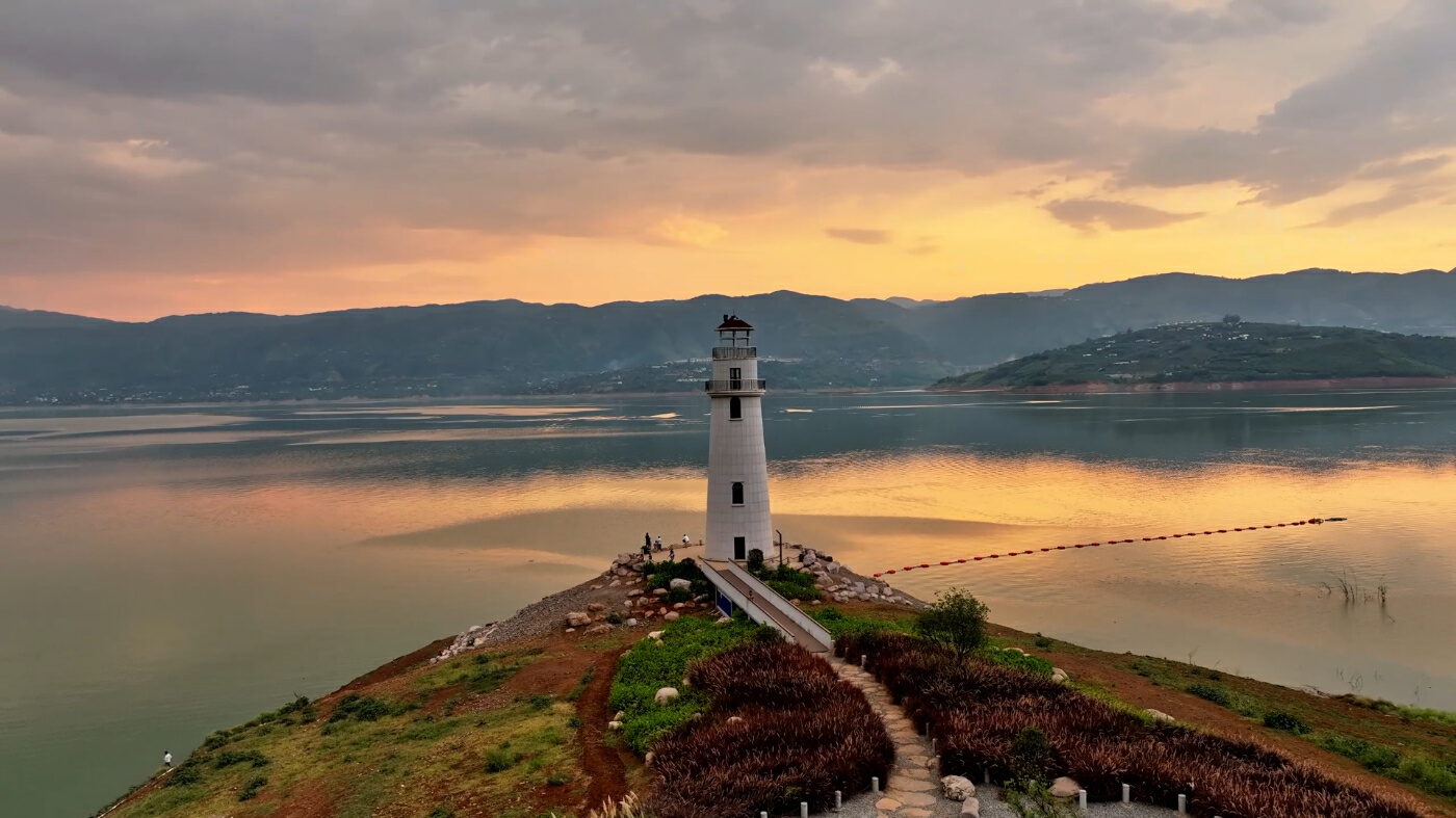 日落時(shí)的濱江燈塔
