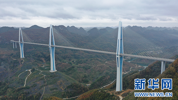 2019年建成通車的平塘特大橋,全長2135米,其橫跨槽渡河峽谷。三座橋塔造型優美,主塔更是高達332米,“天空之橋”的稱謂由此得來。