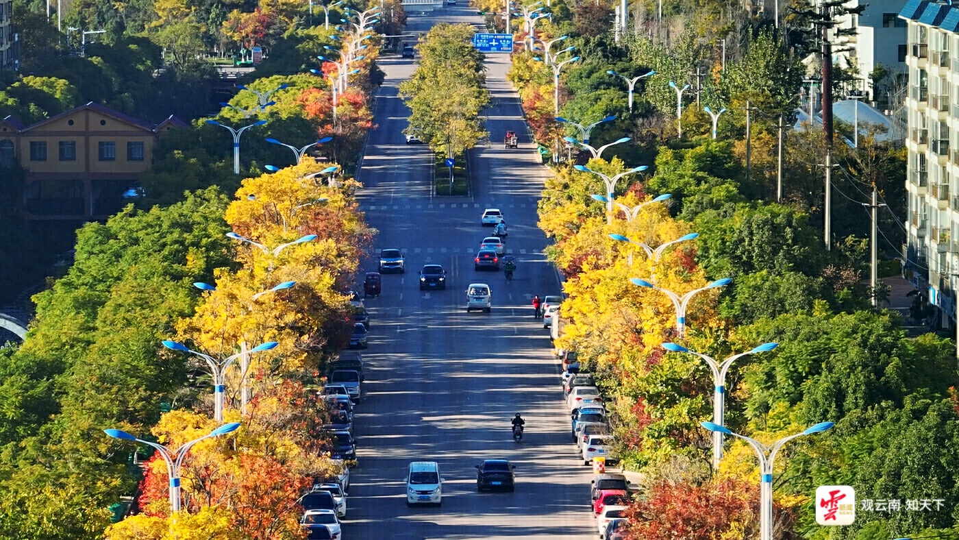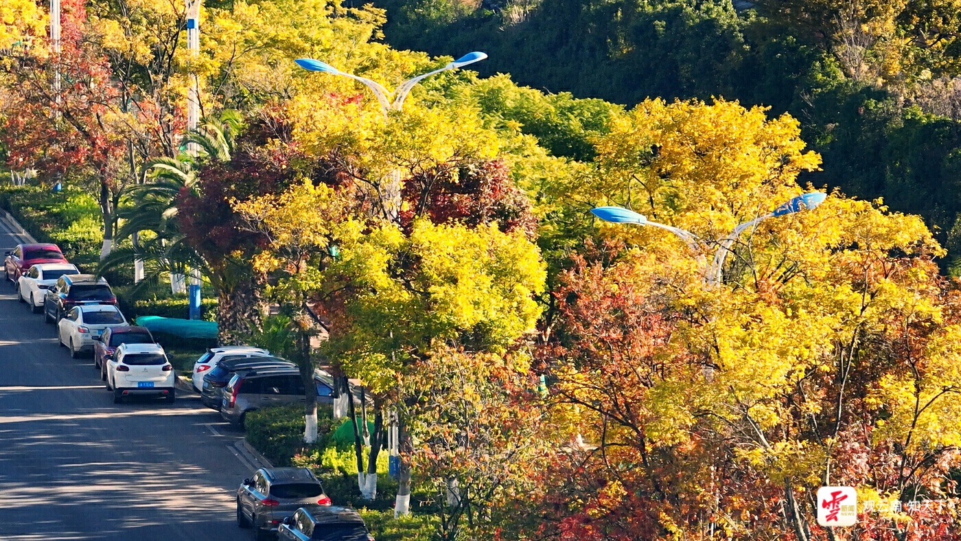城內(nèi),園林深處,綠意盎然間點綴著斑斕色彩,紅葉如火,黃葉似金,綠葉常青,共同織就一幅生態(tài)與美學(xué)并重的冬日畫卷。