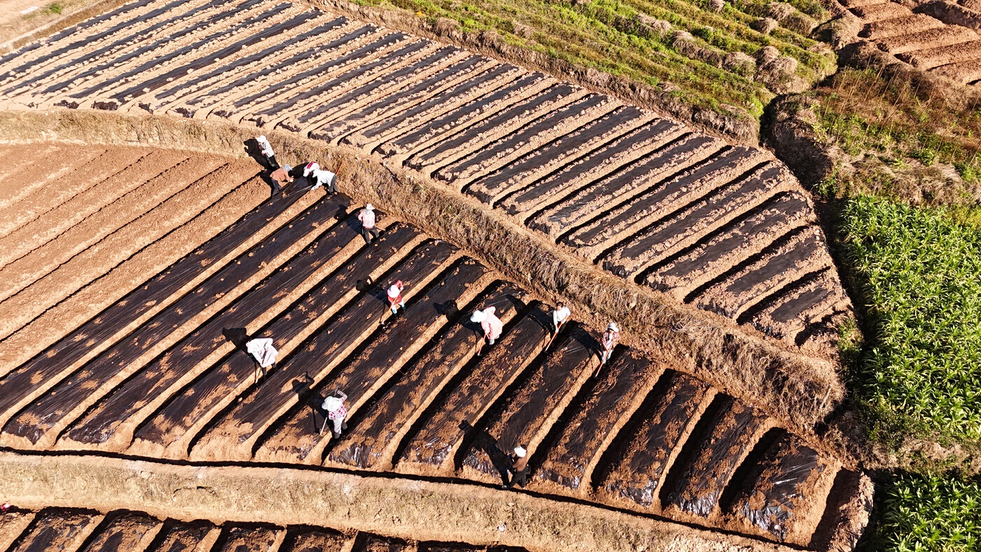 寒冬時節,在景東彝族自治縣大街鎮大街村的田間地頭卻是一片忙碌景象,村民們正忙著翻地、起溝、施肥、播種、覆膜,放眼望去,一條條、一壟壟白色的地膜在者干壩子伸展,孕育著豐收的希望。