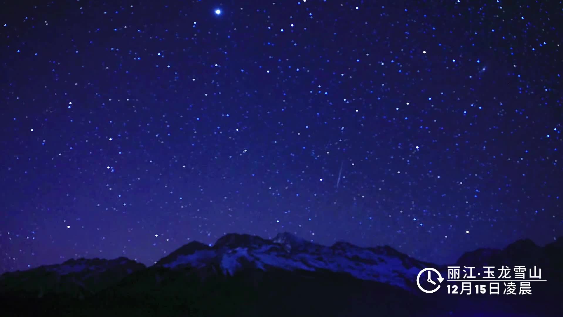 12月14日,流星劃過玉龍雪山夜空的瞬間。(麗江融媒記者 李揚 攝)