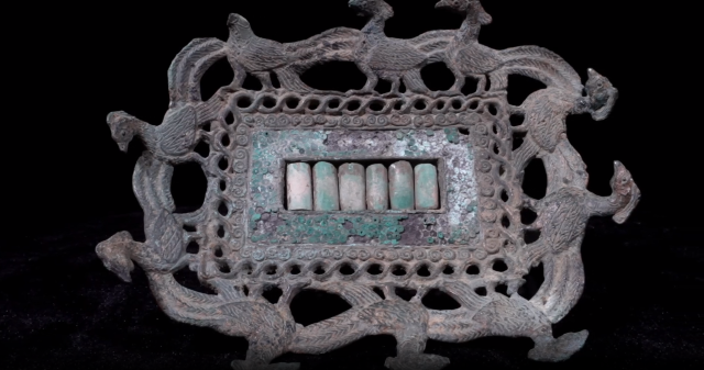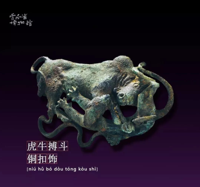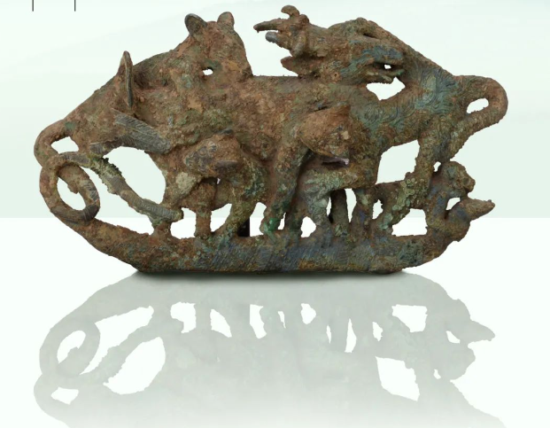 長14厘米、高9厘米,云南晉寧石寨山出土,是一件西漢時期滇族所特有的裝飾用扣飾。