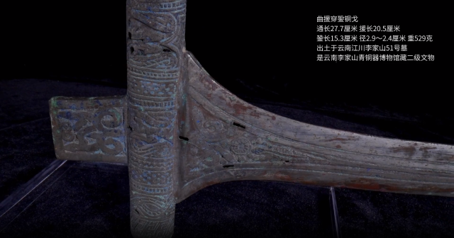 通長27.7厘米,援長20.5厘米,銎長15.3厘米,徑2.9~2.4厘米,重529克。出土于云南江川李家山51號墓,是云南李家山青銅器博物館藏二級文物。