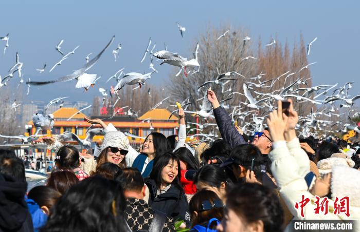 游客在云南昆明海埂大壩與紅嘴鷗互動。中新網(wǎng)記者 李嘉嫻 攝