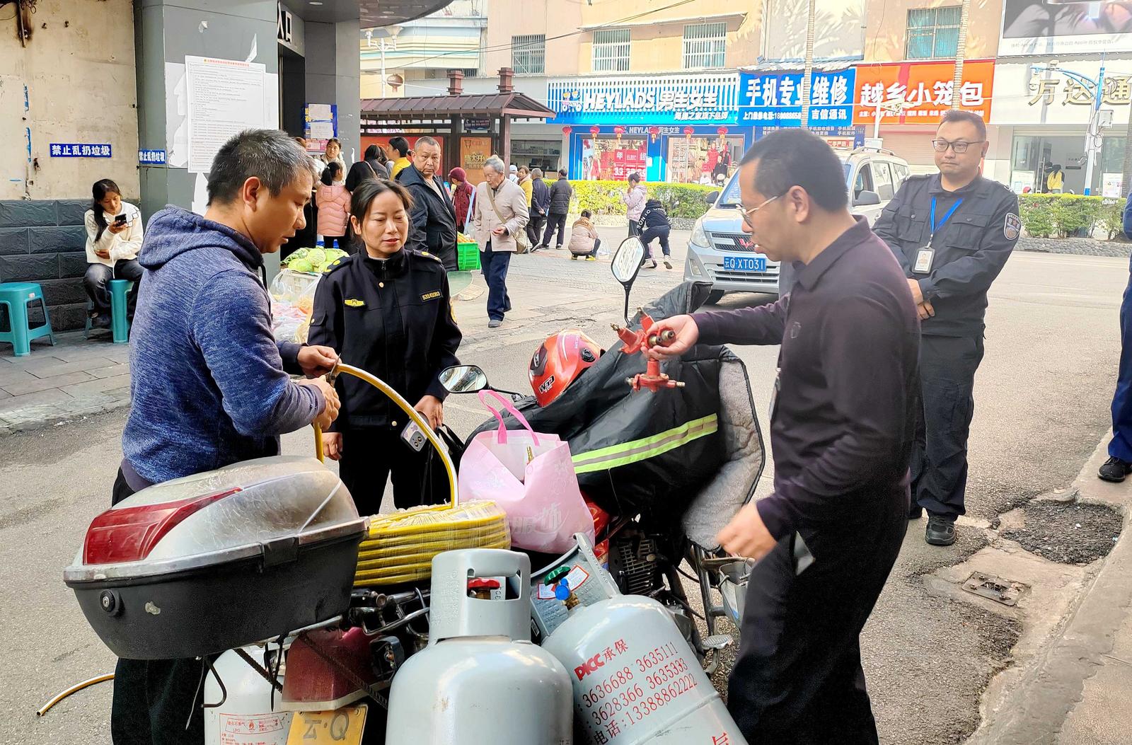 在三和農貿市場,工作人員挨家挨戶檢查燃氣使用情況,重點排查燃氣泄漏報警器安裝使用是否正常、燃氣膠管是否老化破損、用氣環境是否符合安全要求等。同時,向商戶現場講解燃氣安全使用知識和應急處置方法,提高大家的安全意識和自我防范能力。