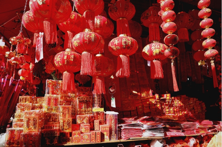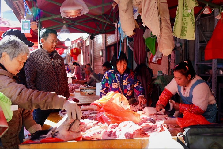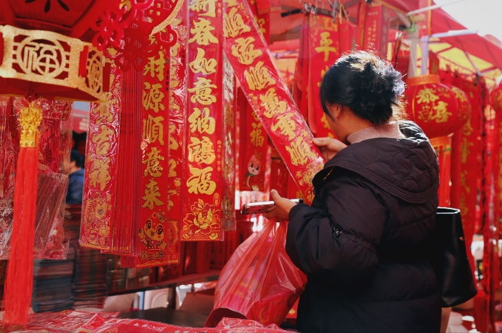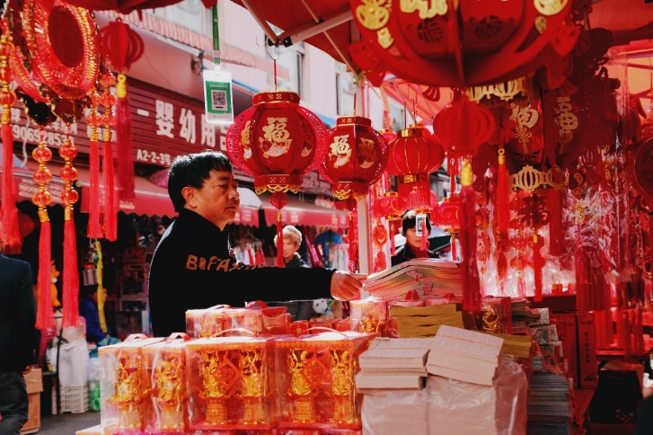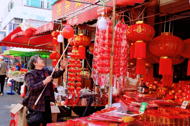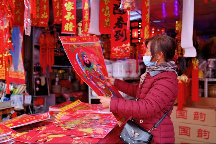 臨近春節,云南省臨滄市臨翔區大街小巷紅紅火火,處處彌漫著濃濃的年味。年畫、春聯、中國結、紅燈籠、生肖掛件等喜慶年貨飾品琳瑯滿目;各色蔬菜、水果、肉類、糧油米面等百姓日常所需物品應有盡有。擺滿春聯的商鋪、熱鬧非凡的街道、人頭攢動的市場、商販陣陣的叫賣聲……這一切都彌漫著過年的喜慶氣息。
