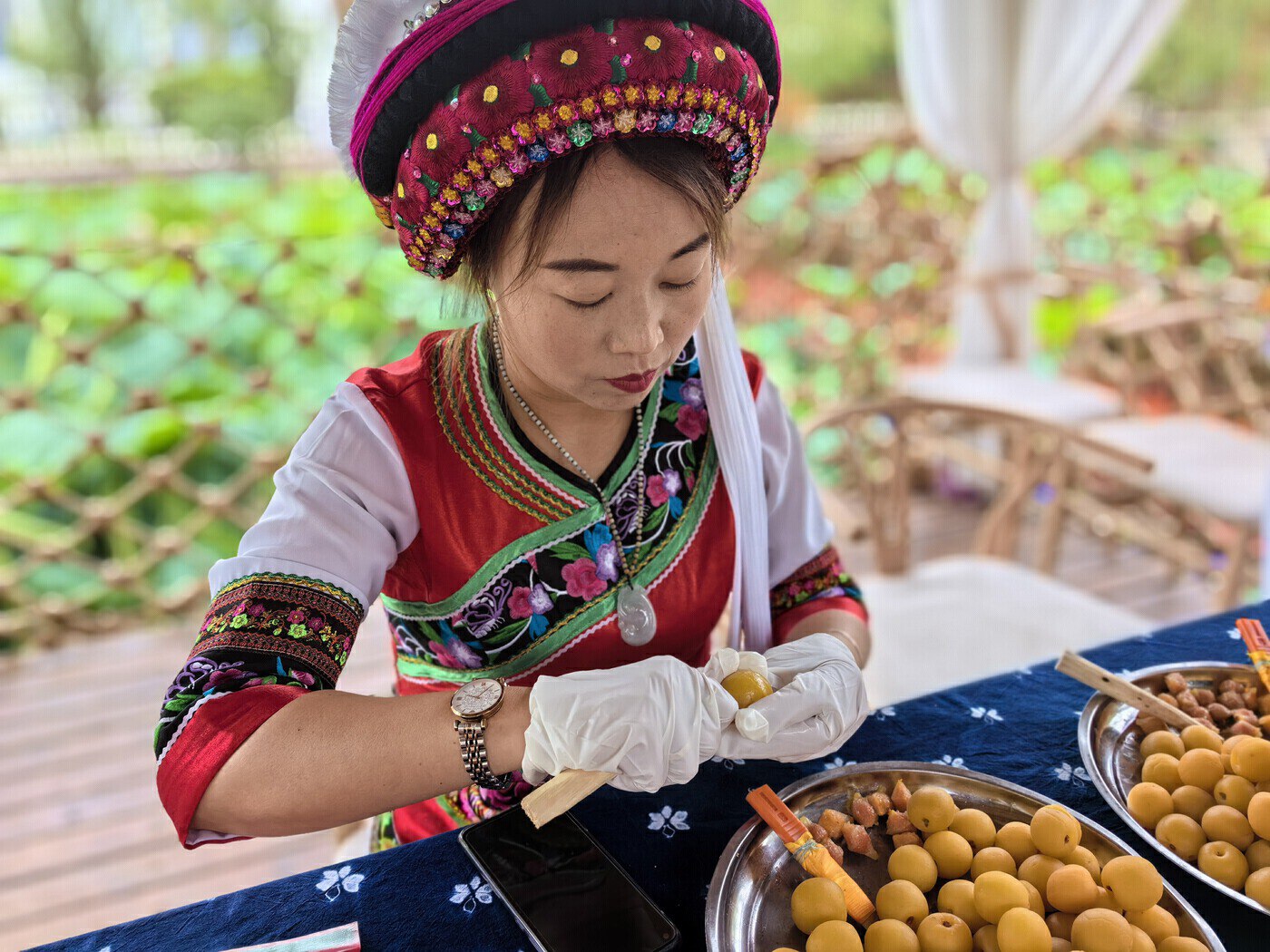 洱源縣盛產(chǎn)梅子,被人們冠以“梅子之鄉(xiāng)”的美稱。這里是白族的主要聚居地之一,不僅有旖旎綺麗的自然風光,還有燦爛厚重的歷史文化,傳統(tǒng)美食中最為出名的便是開胃提神的雕梅。雕梅,是在青梅果上雕刻出一些生動形象的花紋,然后經(jīng)過精心制作而成的白族傳統(tǒng)名特食品,在洱源有著悠久的歷史。在洱源,雕梅不僅代表了一個人的心靈手巧,也象征著美好的愛情和幸福的生活。