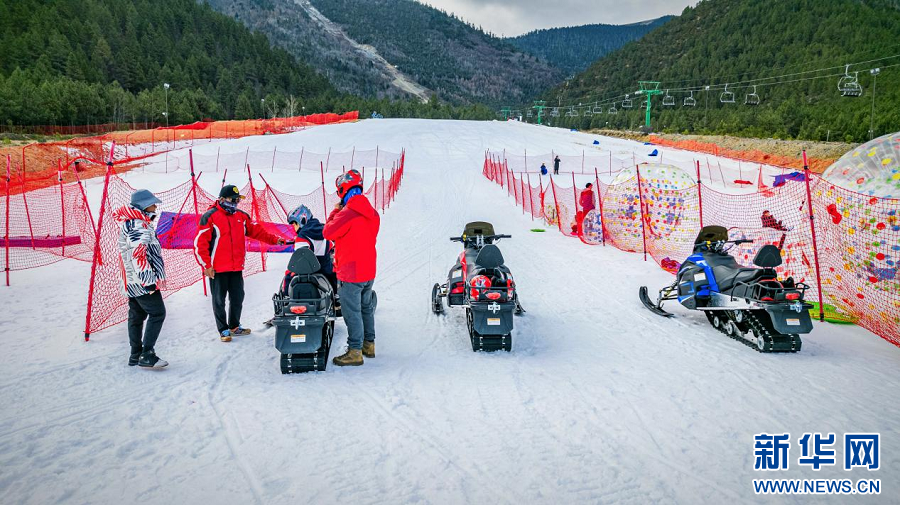 香格里拉七星雪滑雪場里,游客體驗(yàn)戲雪項(xiàng)目(1月8日攝)。新華網(wǎng)發(fā)(云南康旅集團(tuán) 供圖)