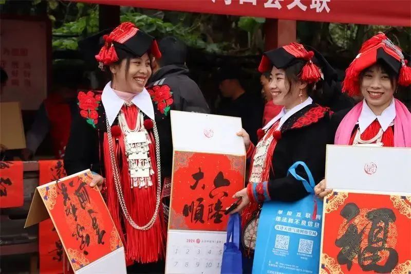 村民將書法家在“三下鄉”活動現場書寫的掛歷帶回家,臉上洋溢著笑容普秋屏 攝
