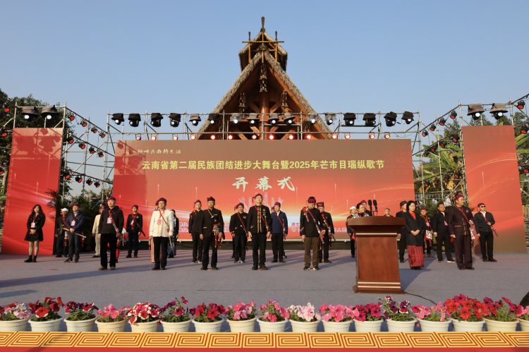 省直、州直有關單位領導,部分州離退休老領導,各縣(市)景頗族學會代表、祝賀團,參加云南省第二屆民族團結進步大舞臺暨2025年“云南舞蹈大家跳”的26個民族代表隊,各學(協)會、民族民間群眾文藝團體代表,相關企業、專家學者參加開幕式。(德宏融媒記者 張智仁 蔣薇 李芷妤)