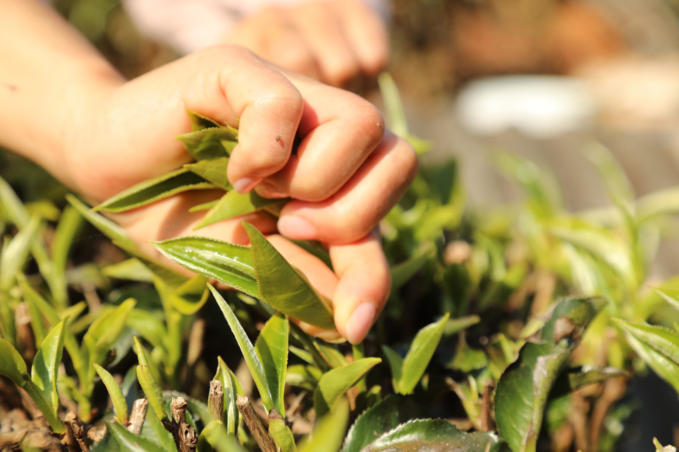 忙碌采摘著鮮嫩翠綠的茶芽