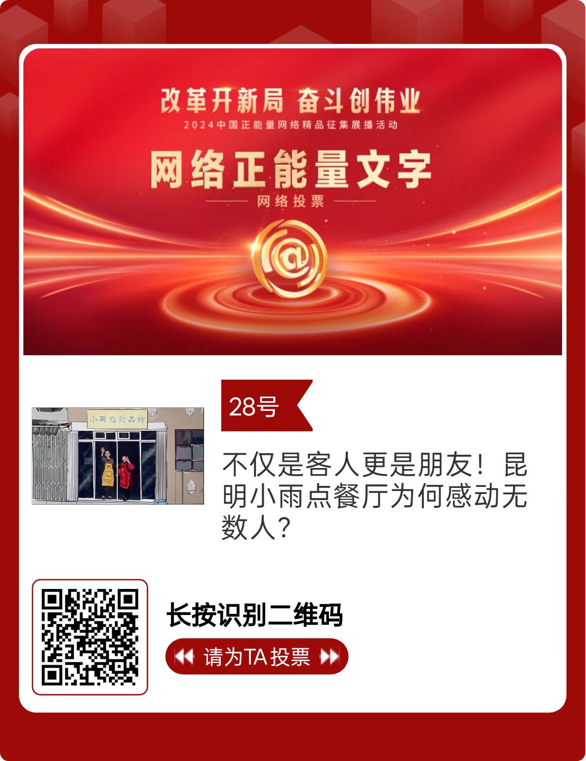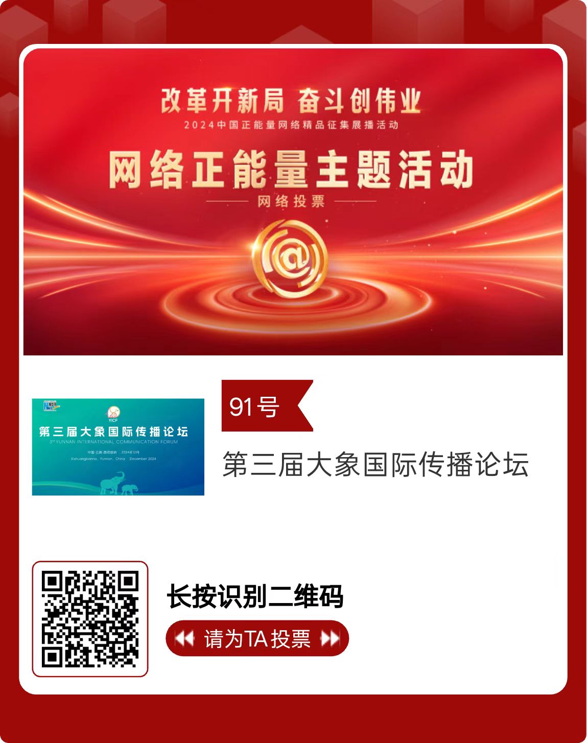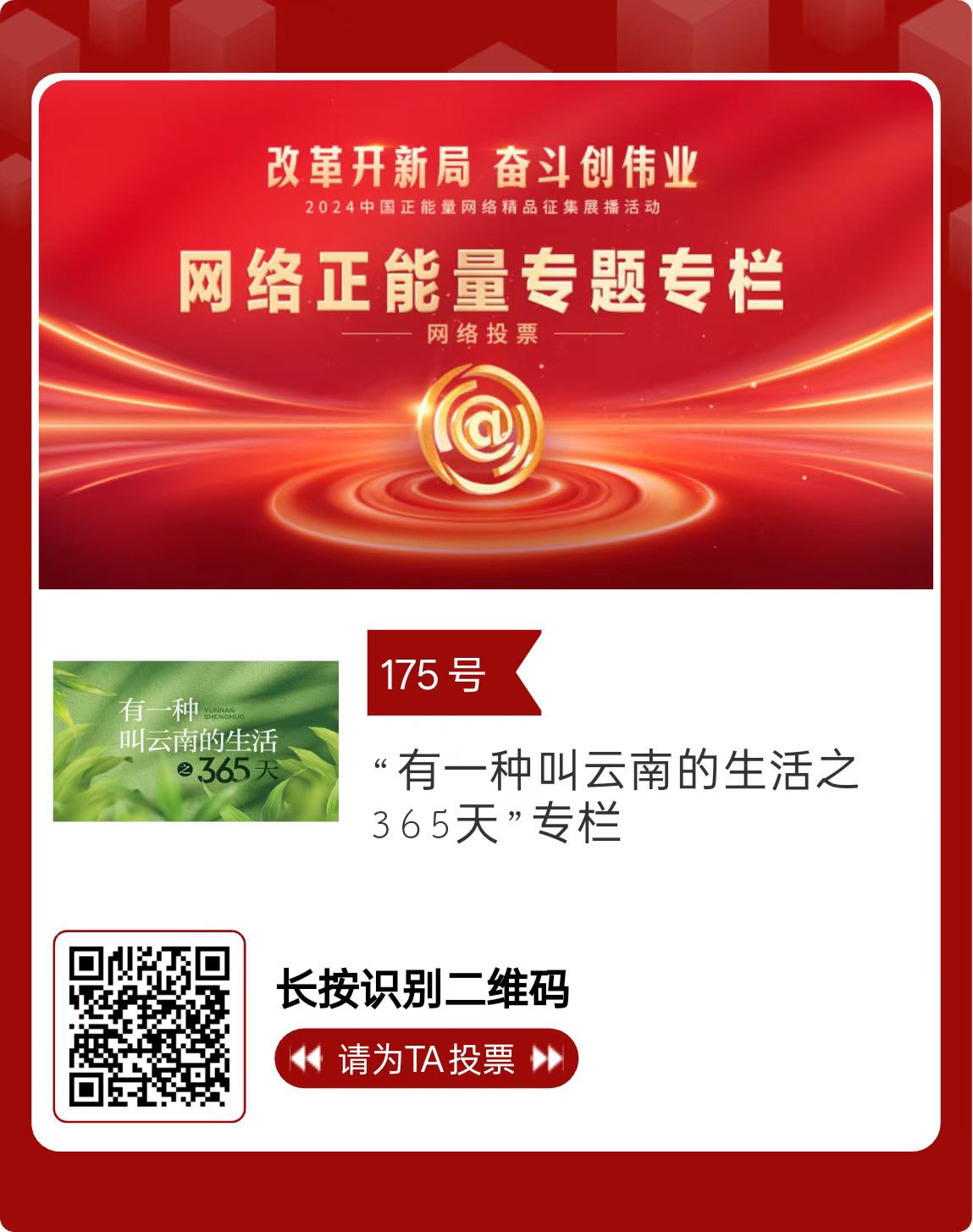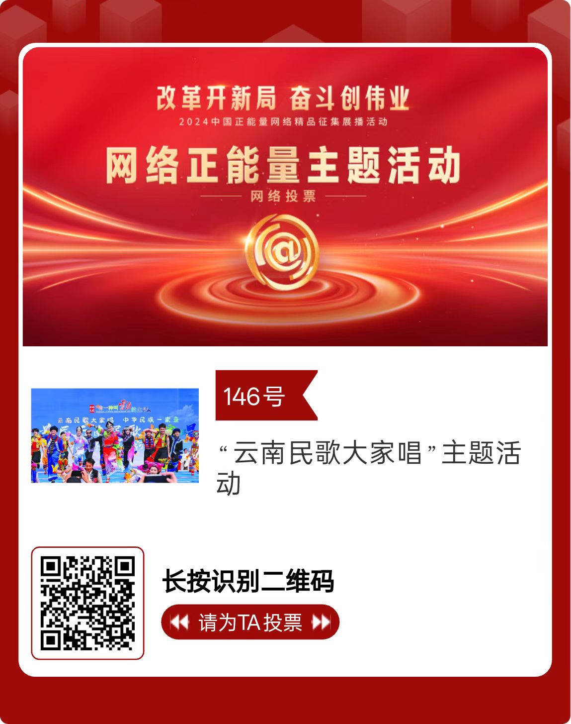 由中央網(wǎng)信辦主辦的2024中國正能量網(wǎng)絡(luò)精品征集展播活動(dòng)啟動(dòng)網(wǎng)絡(luò)展播投票環(huán)節(jié),云南省委網(wǎng)信辦精心選送的30件正能量作品進(jìn)入投票環(huán)節(jié)!這些作品展現(xiàn)了云南的獨(dú)特魅力與時(shí)代風(fēng)采,每一件都凝聚著創(chuàng)作者的心血與智慧。現(xiàn)在,它們需要您的支持!動(dòng)動(dòng)手指,為云南投上寶貴的一票,助力正能量傳播,讓云南的聲音響徹全國!