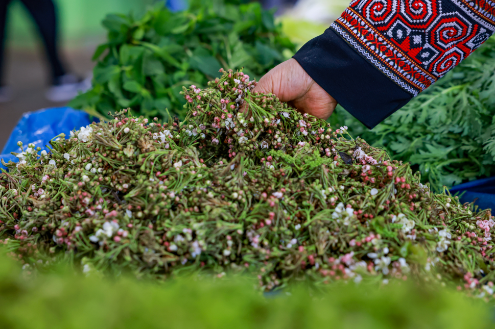 大觀篆新農貿市場內售賣的各種春花野菜。記者 楊崢 攝