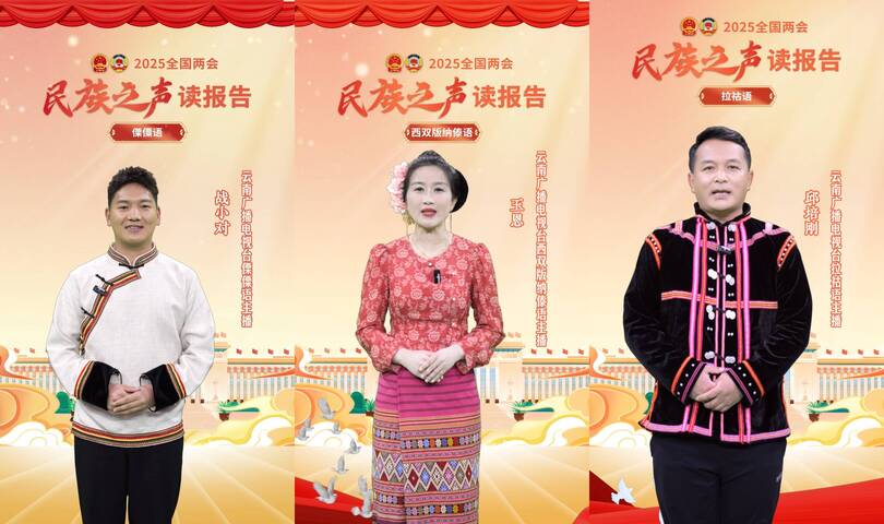 第十四屆全國人民代表大會第三次會議3月5日在北京人民大會堂開幕。國務院總理李強在開幕會上代表國務院向大會作政府工作報告。為了及時讓民族地區干部群眾學習領會報告精神,云南廣播電視臺特別推出多語種融媒體特別節目《民族之聲讀報告》。用西雙版納傣語、德宏傣語、傈僳語、景頗語、拉祜語、納西語、哈尼語、佤語、彝語、壯語、瑤語、苗語、藏語十三種少數民族語言+普通話,為您精要解讀《政府工作報告》的核心要義。將《政府工作報告》重要精神"云端速遞"至邊疆少數民族地區,送到廣大少數民族群眾中去。