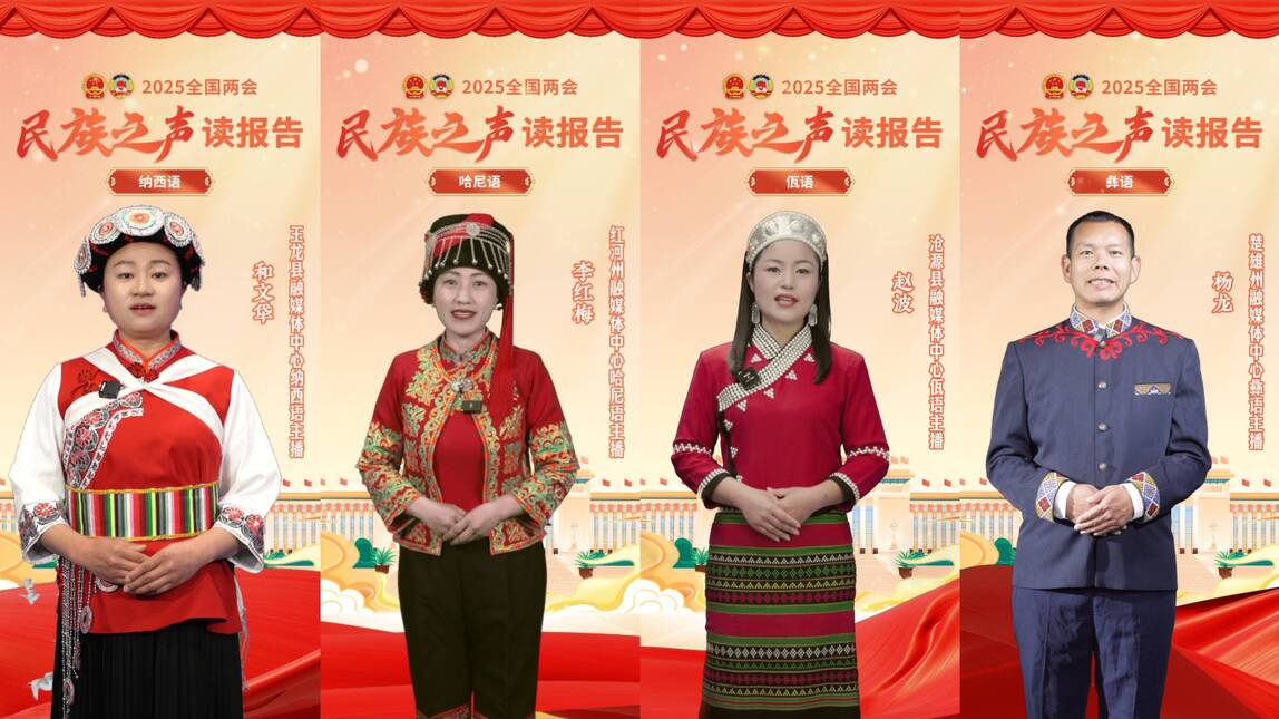 《民族之聲讀報告》融媒體特別節目運用短視頻+互動H5+海報+動畫等全媒體形態,用14種語言第一時間解讀《政府工作報告》,實現了云南各民族受眾的全覆蓋。