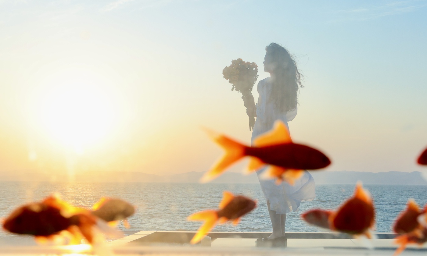 手捧一束鮮花,手持一杯咖啡,在海晏村的絕美日落前合影留念,幾乎列入每位游客的愿望清單。