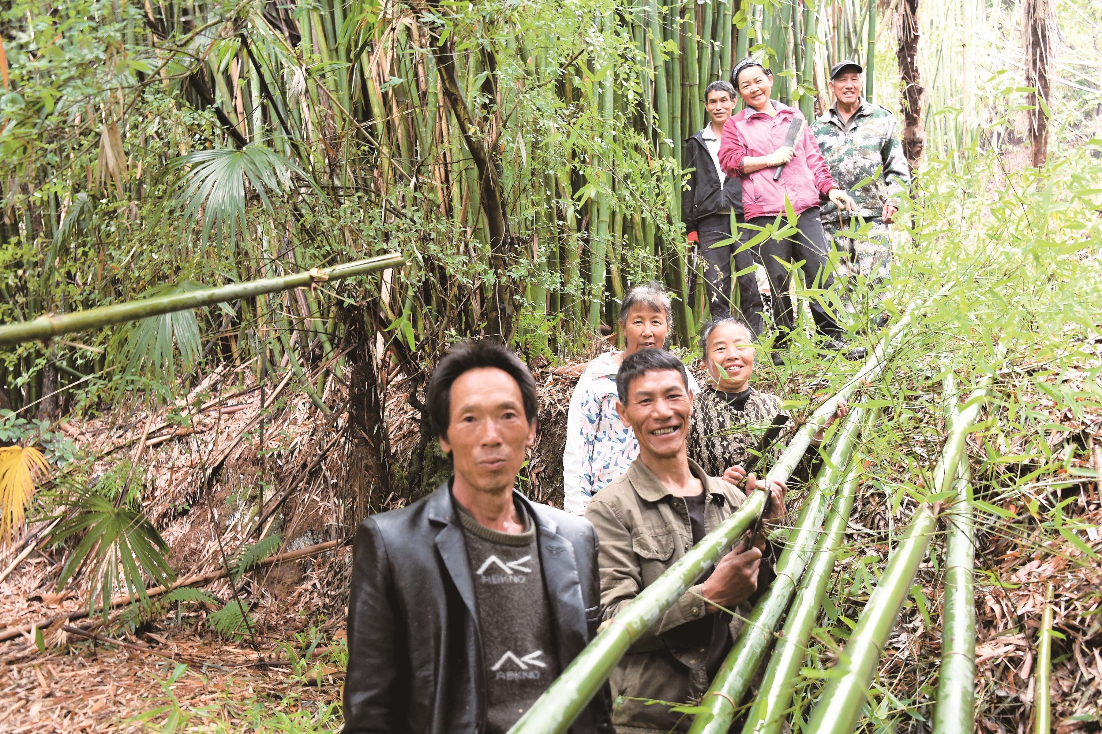 左玉偉帶著合作社的鄉親們在竹林里伐竹。幾天前,合作社接到了彌渡縣餐飲美食協會150張篾桌的訂單,大家的心里都十分開心。