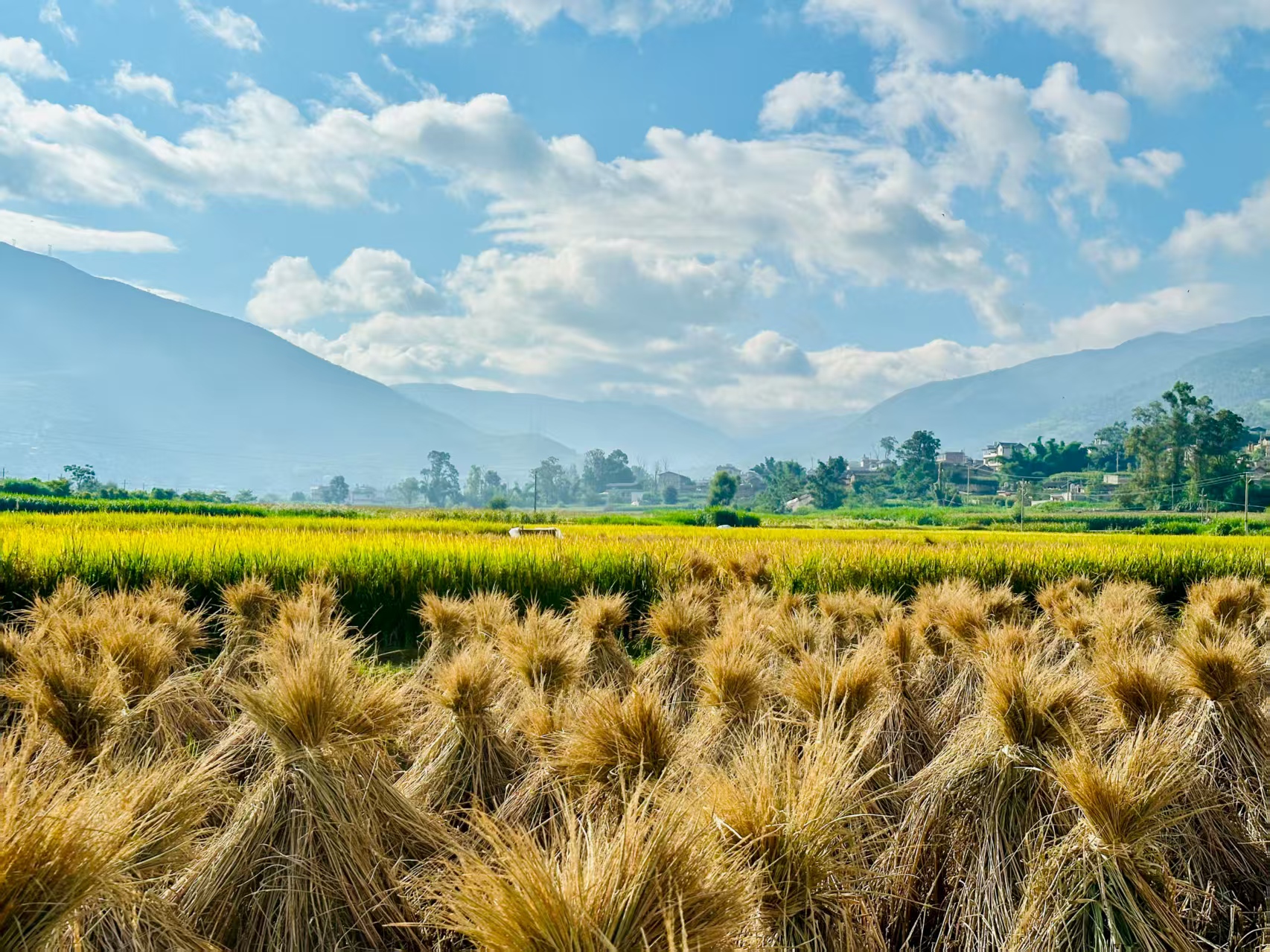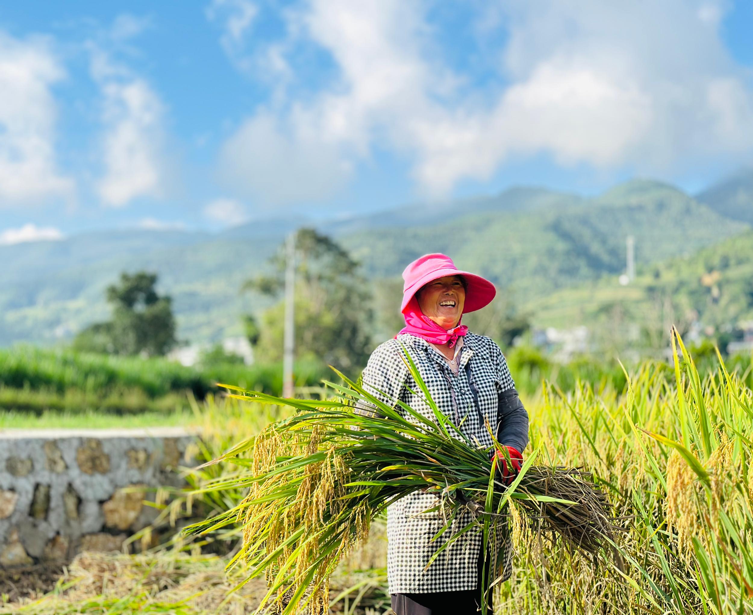 金秋時節(jié),大理白族自治州永平縣杉陽鎮(zhèn)小寨村等村組的田野間一片金黃,沉甸甸的稻穗壓彎了稻稈,微風(fēng)拂過,稻浪翻滾、稻香撲鼻。時下,正值當(dāng)?shù)貎?yōu)質(zhì)香軟稻集中收割期,農(nóng)戶們穿梭田間忙著收割、脫粒,豐收的喜悅洋溢在每個人的臉上。