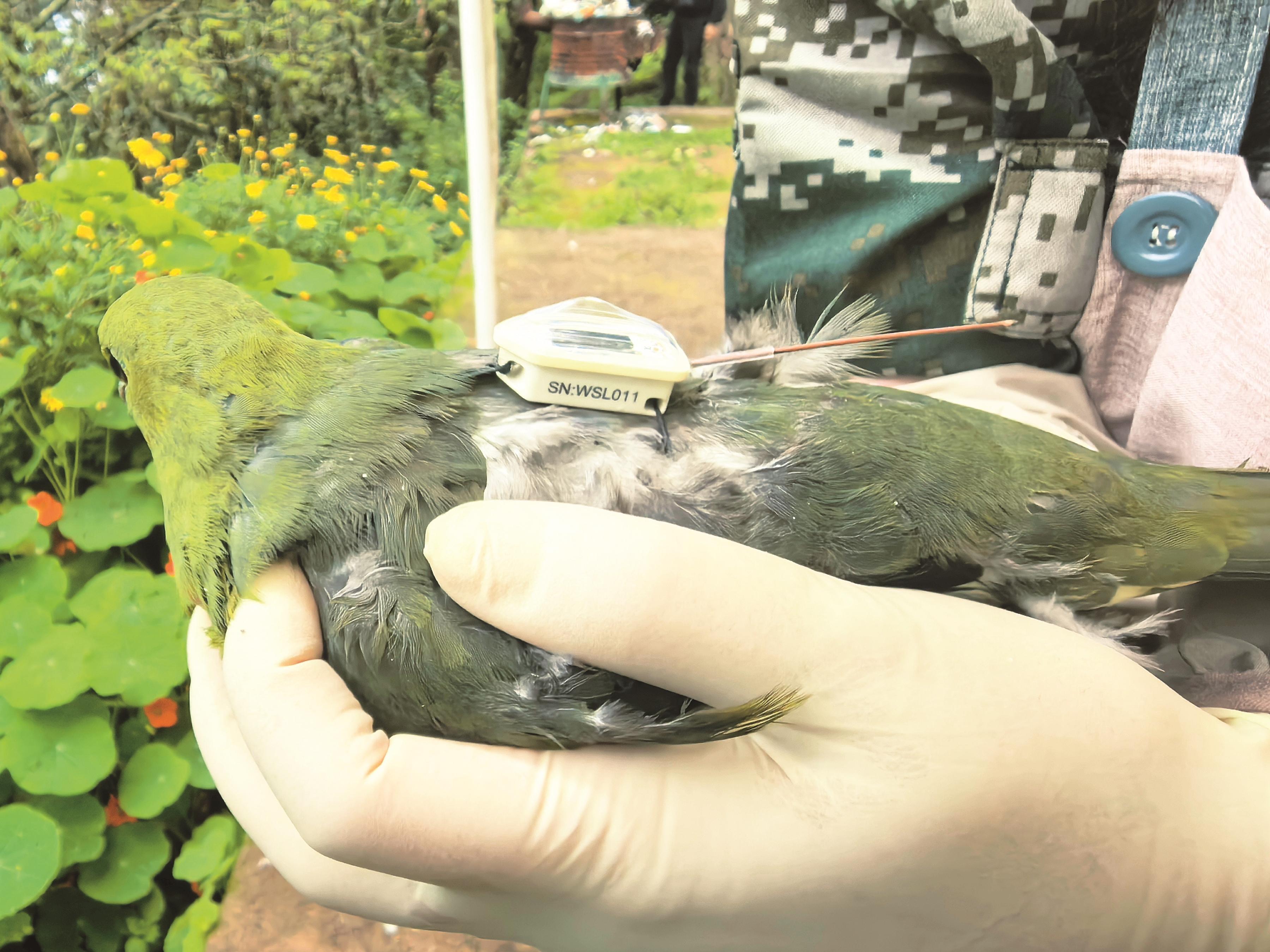 ② 工作人員為候鳥佩戴衛星追蹤器。(攝于9月20日)