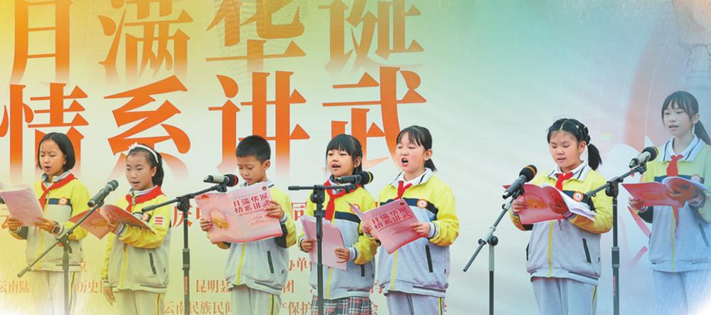 云南陸軍講武堂小講解員朗誦詩歌。 本報記者 陳飛 攝