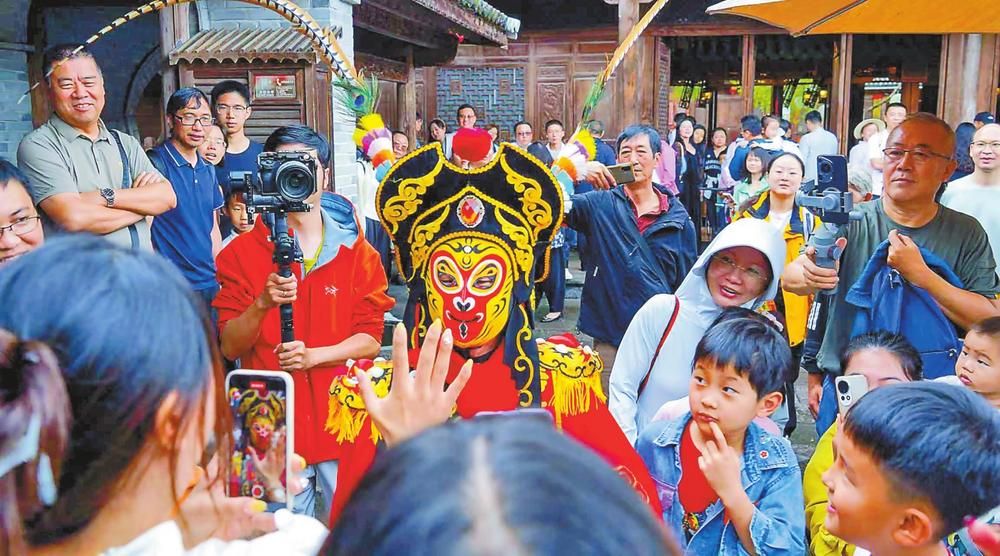川劇變臉吸引游客駐足。通訊員官智欽鄒燮錦 攝