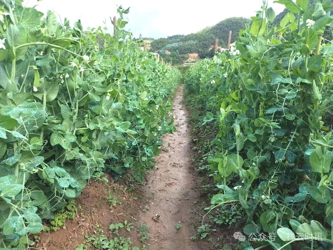 當前,東山鄉補種的1600多畝秋豌豆長勢喜人,陸續進入開花結莢期,一片生機勃勃的景象。