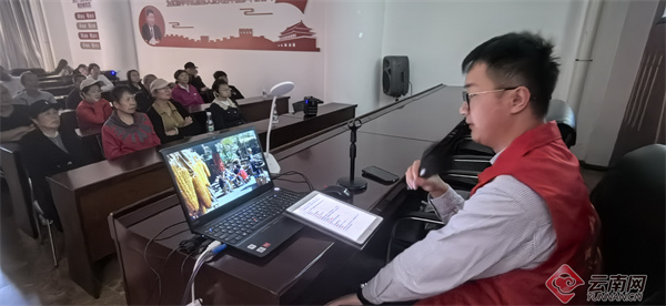 上午,口述電影志愿者郭濤瑋講解《走路上學(xué)》,結(jié)合宜良耿家營(yíng)鄉(xiāng)苗族“背秋娃”民俗、山后櫻花谷鄉(xiāng)村振興實(shí)踐,用本地民族生活意象輔助解說(shuō),增強(qiáng)殘障群眾精神共鳴。下午,口述電影志愿者楊曉敏解說(shuō)《毒舌律師》,讓民眾更具象化地理解中國(guó)司法對(duì)公平正義的執(zhí)著精神。