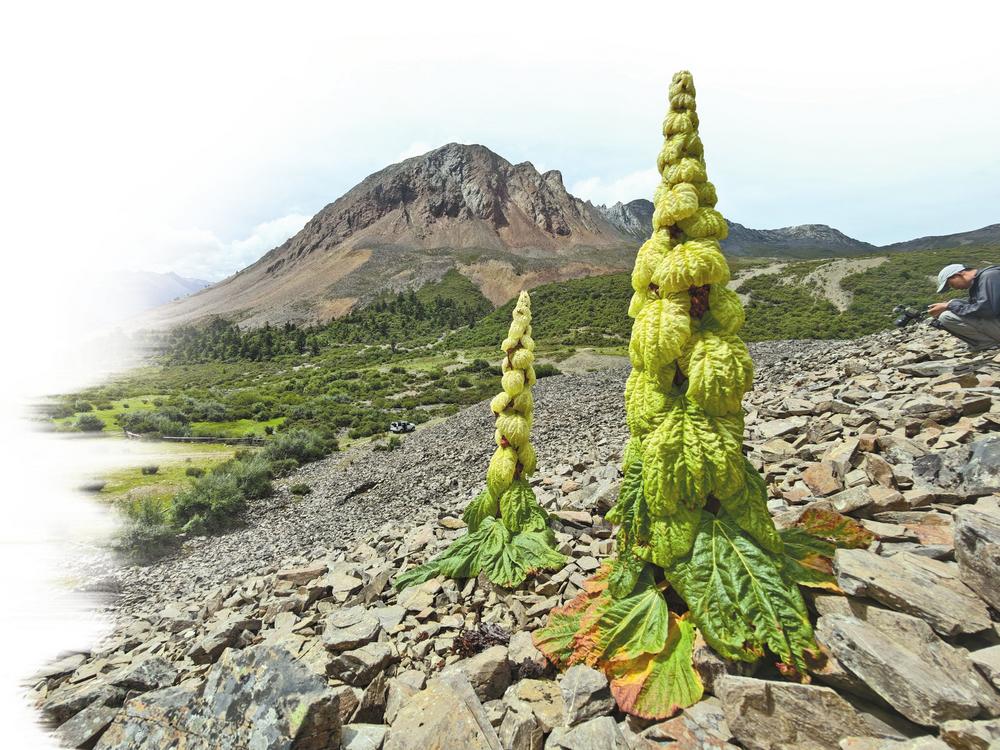 塔黃是分布在高山冰緣帶的群落構建物種,對維護高山冰緣帶生態系統有重要作用。作為單次結實植物,塔黃需經歷5至7年甚至更長的時間營養積累,才能迎來一生當中的唯一一次花期。未開花時,它形似“略帶玫紅色的大白菜”,匍匐于石縫間;6至8月花期來臨,塔黃迅速抽出花序,外層苞片緊密包裹,形成天然“溫室”。科研實測顯示,苞片內部溫度比外部高10攝氏度以上,不僅為花粉和胚珠發育提供溫暖微環境,更以半透明膜質結構過濾80%以上的紫外線,成為花朵的“生命庇護所”。