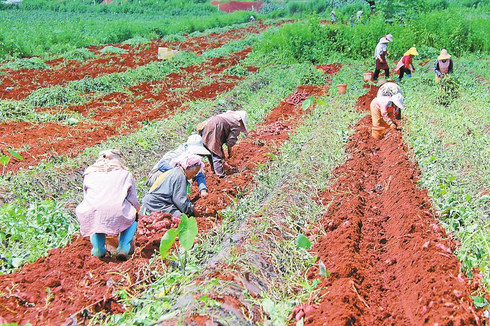 村民采挖紅薯和芋頭。 本報(bào)通訊員 李鎬陽(yáng) 攝