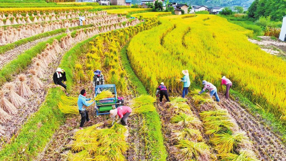 9月上旬,云龍縣功果橋鎮的萬畝優質水稻迎來收獲季,大理白族自治州進入秋糧豐收進行時。