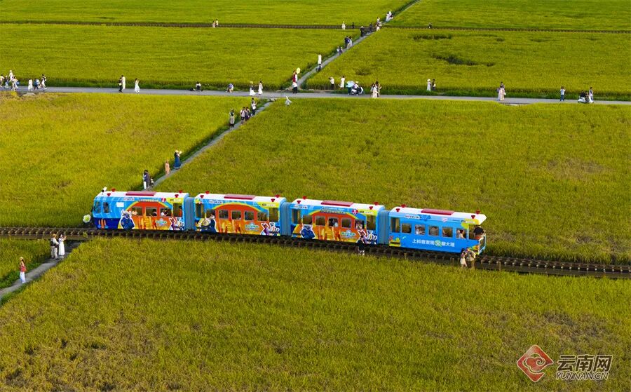 “喜洲號”“有風號”小火車滿載游客在稻田間穿行,形成獨特的移動風景線。