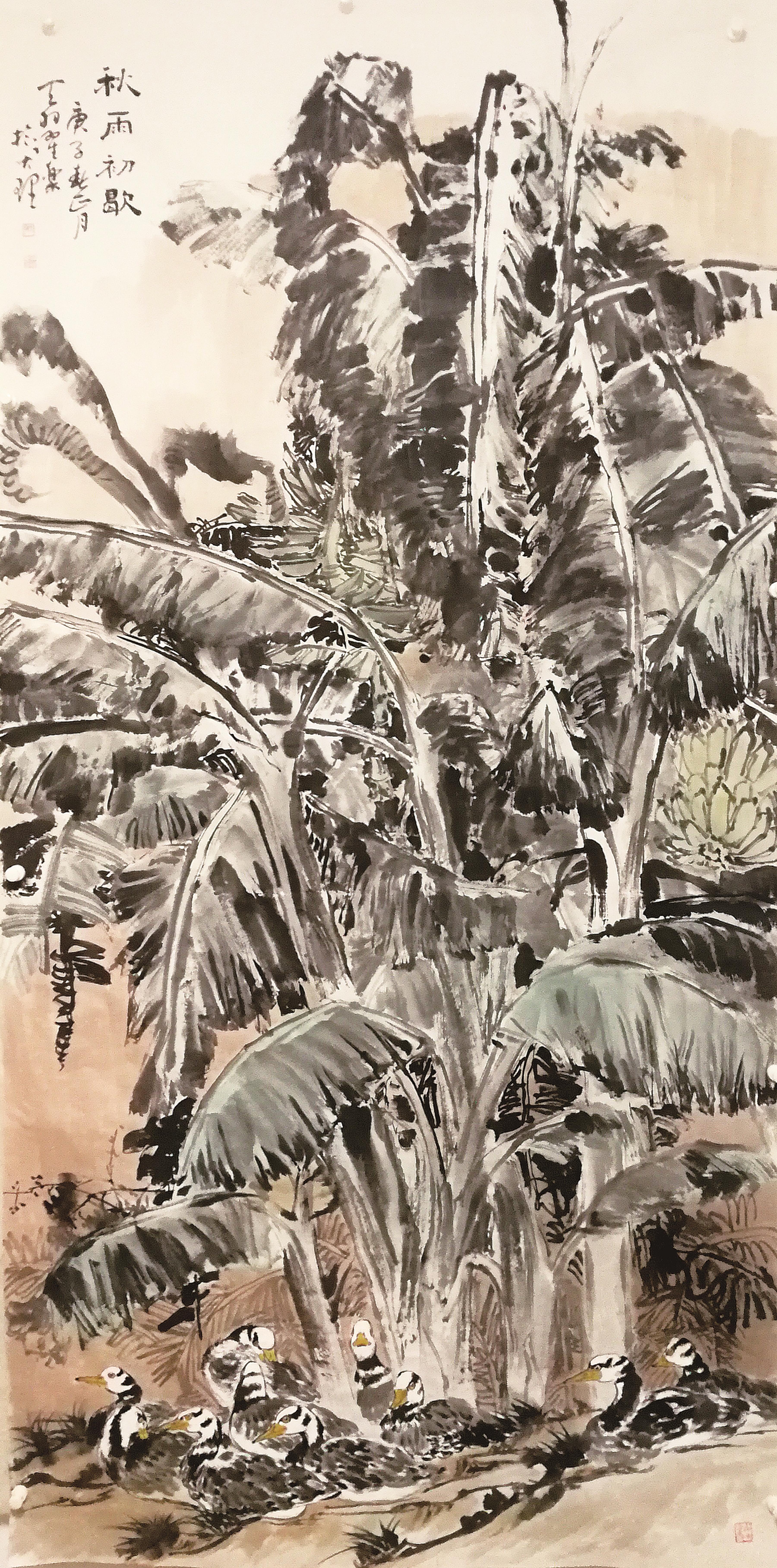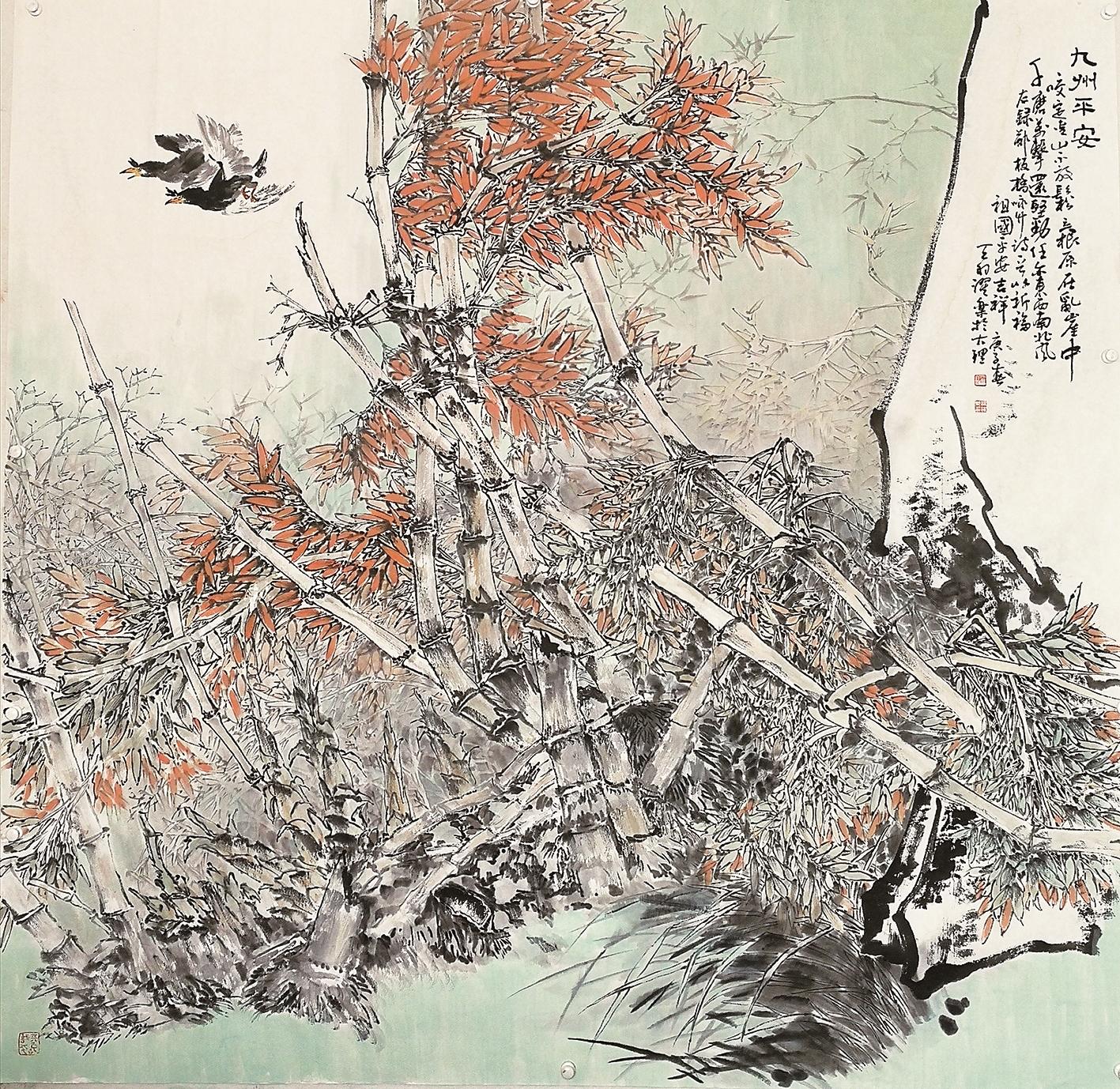 書(shū)畫(huà)同源。書(shū)法和中國(guó)畫(huà)的工具材料完全相同。中國(guó)最早的文字甲骨文多為象形字,這是書(shū)畫(huà)同源的最好詮釋。我認(rèn)為,中華傳統(tǒng)文化博大精深,書(shū)法承載著幾千年的厚重歷史文化。加強(qiáng)書(shū)法修養(yǎng),就能汲取古人的智慧,在文、史、哲等方面充實(shí)自己,從而使創(chuàng)作更具內(nèi)涵。書(shū)法的線條和中國(guó)畫(huà)有異曲同工之妙,不同的字體在結(jié)體,用筆技巧等方面可以在畫(huà)法中得以體現(xiàn)。最重要的一點(diǎn)是,書(shū)法題款是畫(huà)面的重要組成部分,書(shū)法的好壞直接影響畫(huà)面的效果。