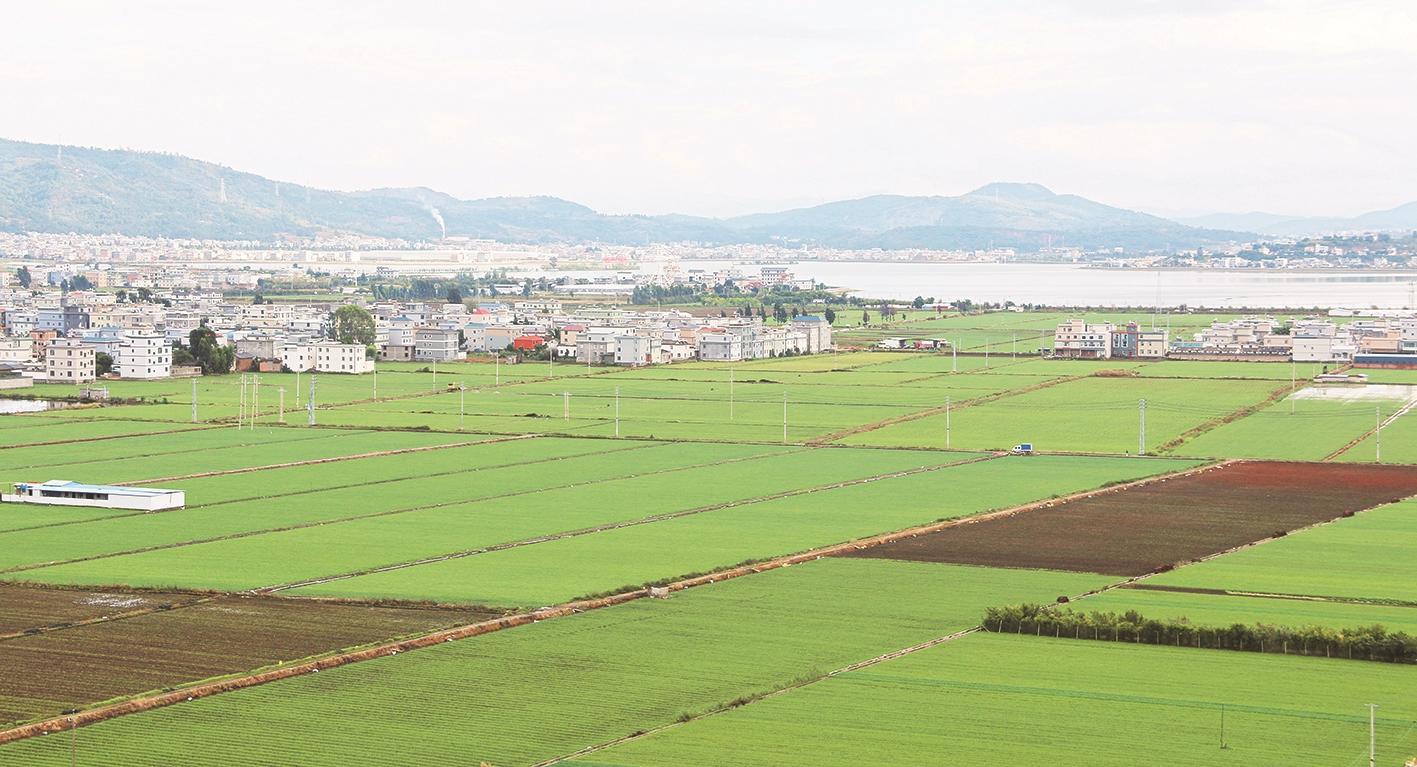 秋日的祥云縣青海湖畔,生機(jī)盎然的田野與周圍的民居相交織,宛如一幅綠色畫卷。(10月20日無人機(jī)航拍圖片)