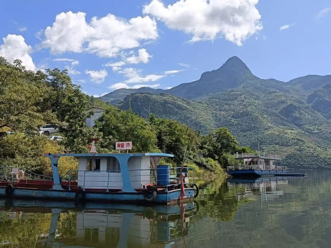 高峽出平湖,山水美如畫。10月21日,走進巍山縣青華鄉漾江村委會老四渡,豐水期的漾江,千峰競秀,山水相連,景色蔚為壯觀。蔚藍的天空、潔白的云朵、高聳的山峰,閑映在碧綠的江水中,宛若人間仙境。