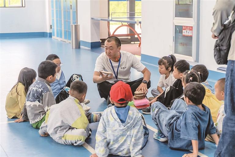 董峻源和研學營的孩子們一起做活動。 [通訊員 霍時雨 攝] “新農人的‘新’在于意識新、想法新、干法新。讓城市的孩子們重新認識土地,就是最好的鄉村振興?!?——董峻源