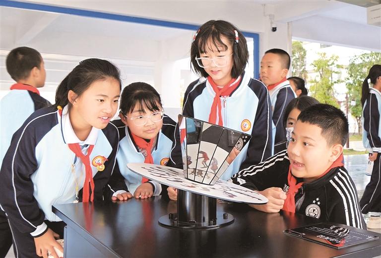 同學(xué)們被眼前的電影科學(xué)小實(shí)驗(yàn)吸引住了。(攝于11月12日)
