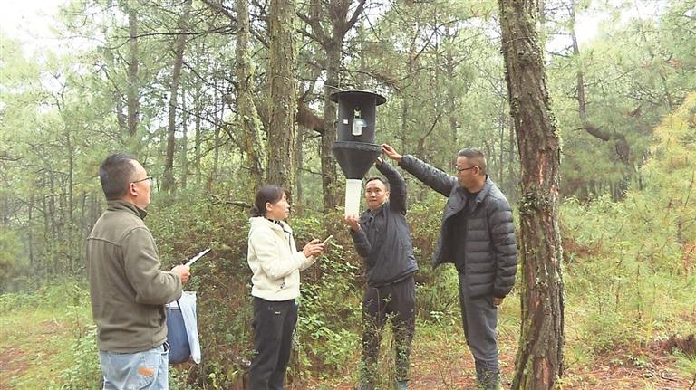彌渡縣松科植物分布廣泛,占全縣林地面積的一半以上,分布在8個鄉鎮、1個國有林場。本次補充調查人員深入全縣7424個松樹小班,采用剝皮、罩網、解析木、球果調查等方法,并利用誘捕設備、飛行阻隔器及餌木堆等手段采集蟲害信息,再通過線蟲防控App上傳至電腦端,實現蛀干害蟲監測數據精準到小班、踏查任務落地上圖,實現蛀干害蟲監測全過程精細化可視化管理。