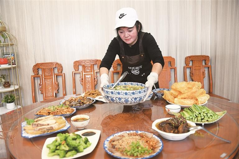 正是這份傳承堅守與不斷的創新努力,偰艷和家人在經年累月的打磨中,讓偰氏面片店從村里一家只有近100平方米的小店,發展成為美食創業園區內面積達1100多平方米的大店,空間開闊、環境舒適,可容納300人同時就餐。