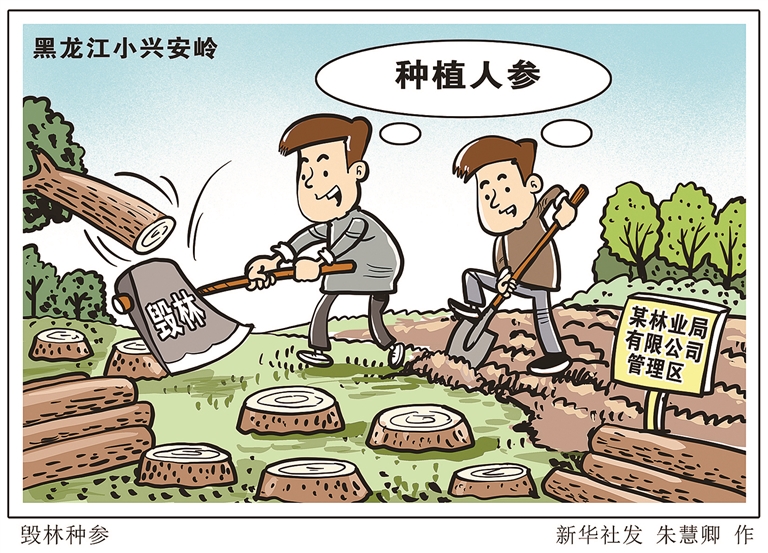 位于黑龍江省北部的小興安嶺,是重要的河流發源地、東北天然生態屏障,在保障國家生態安全中具有重要戰略地位。近日,“新華視點”記者跟隨中央第一生態環境保護督察組在黑龍江省發現,自2016年以來,中國龍江森林工業集團有限公司下屬沾河林業局有限公司管理區內毀林種參1.6萬余畝,違規在防火隔離帶種參1.1萬余畝,導致小興安嶺生態環境遭到嚴重破壞。